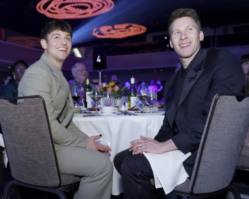 NEW YORK, NEW YORK - MARCH 03: (L-R) Tom Daley and Dustin Lance Black attend PFLAG National 50th Anniversary Gala at Marriott Marquis on March 03, 2023 in New York City. (Photo by John Lamparski/Getty Images for PFLAG)